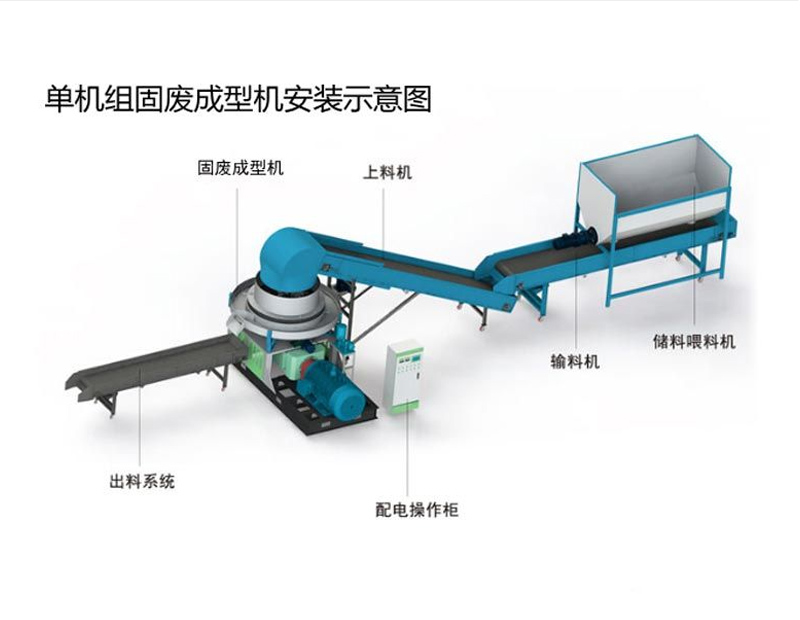 该固废成型设备具有模盘上加装可换耐磨衬套,通过加装不同长度的耐磨衬套具有不同的压缩比,可生产加工各类垃圾废料,使用面广、成型效果好、实用性强、产量高、耗能低、效率高、等特点。广泛用于造纸厂、印刷厂、纺织厂、被服厂(如布条、线头、皮革、下脚料、纸渣等)、塑料制品、垃圾处理厂、拆车厂(废旧塑料、橡胶、织物、沙发、混合物料、生活垃圾等)、中药厂、养殖厂等工业企业。加工压制固体废弃物的处理。